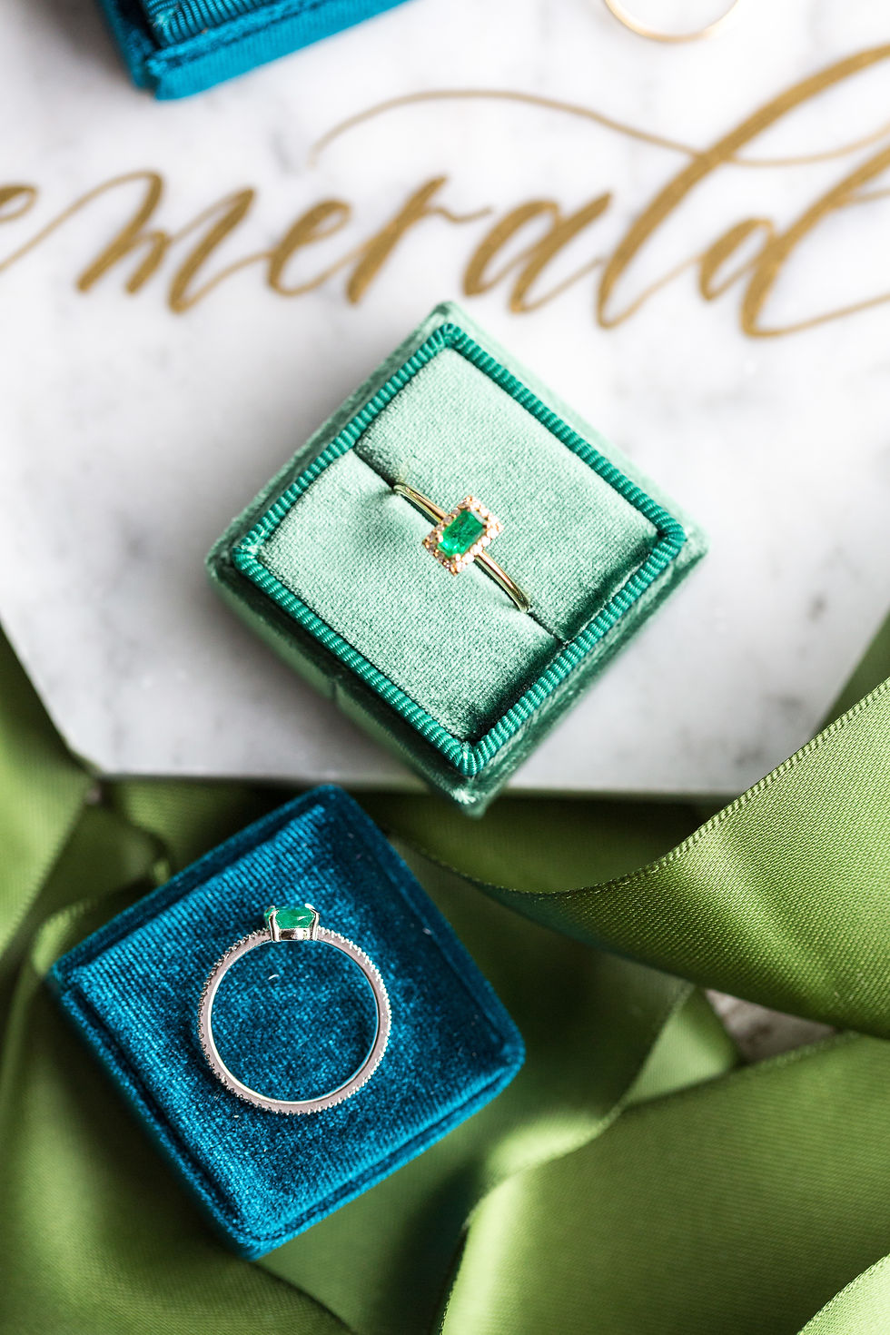 Rectangle yellow gold emerald and diamond ring
